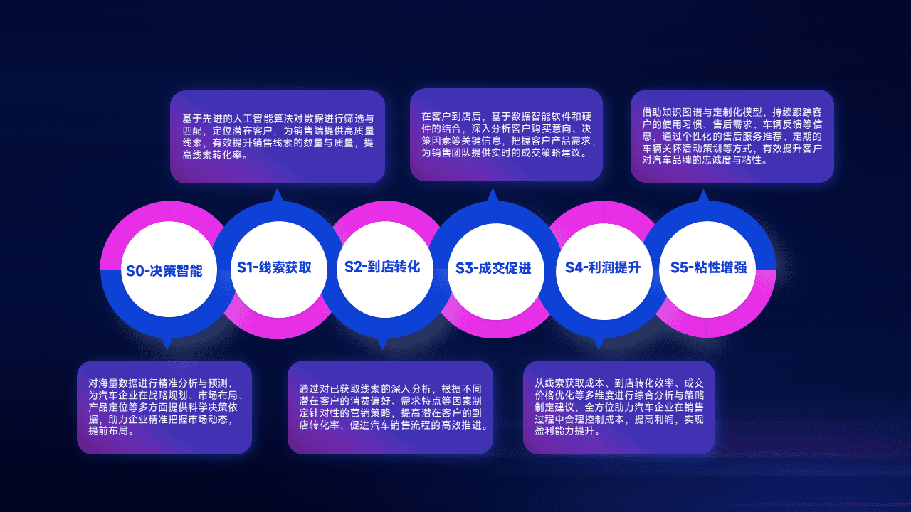 通过拓宽潜在客户来源、、、优化线索分配并提高到店转化率,,,,以增强销售效率。。同时,,,利用线索数据不断优化分析模型,,有效提升转化率,,,,扩大营销影响力。。。